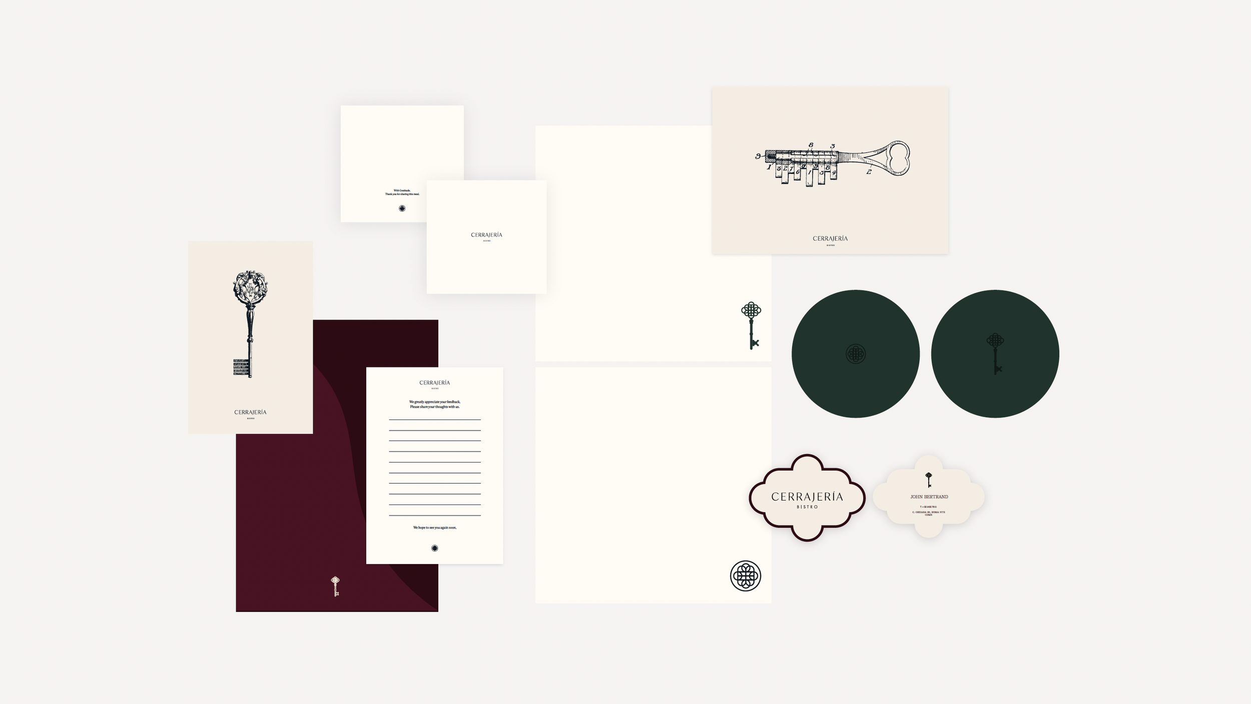 We crated a small rebrand and editorial system for CerrajerÃa Bistro. The project focused on refining the existing visual identity and developing a cohesive set of printed materials, including menus and stationery.