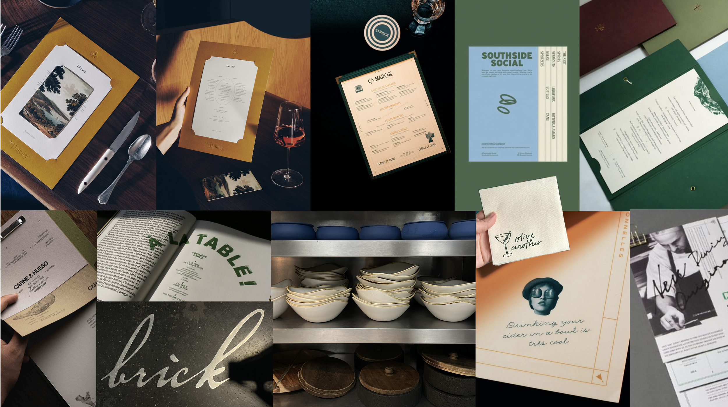 The updated system balances tradition and contemporary elegance through restrained typography, a deep color palette, and subtle graphic elements inspired by the restaurant’s name and atmosphere.