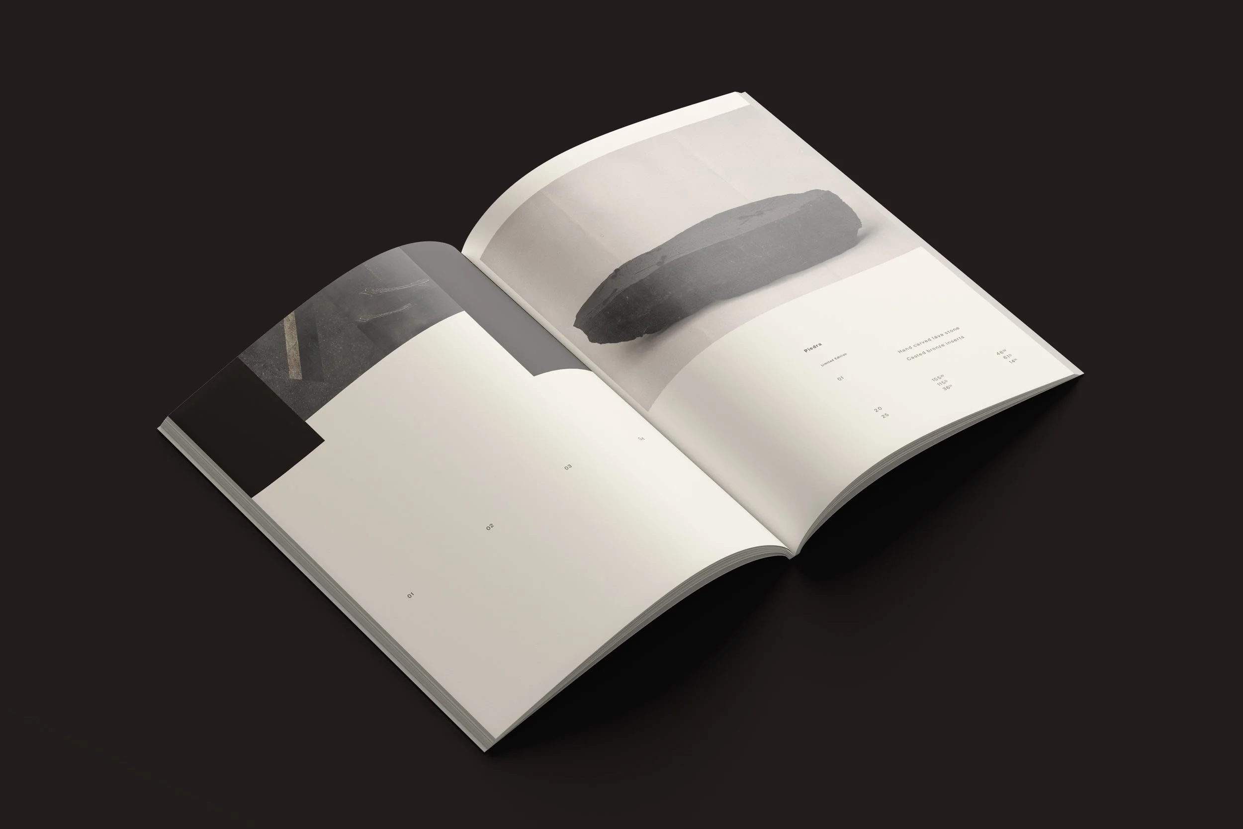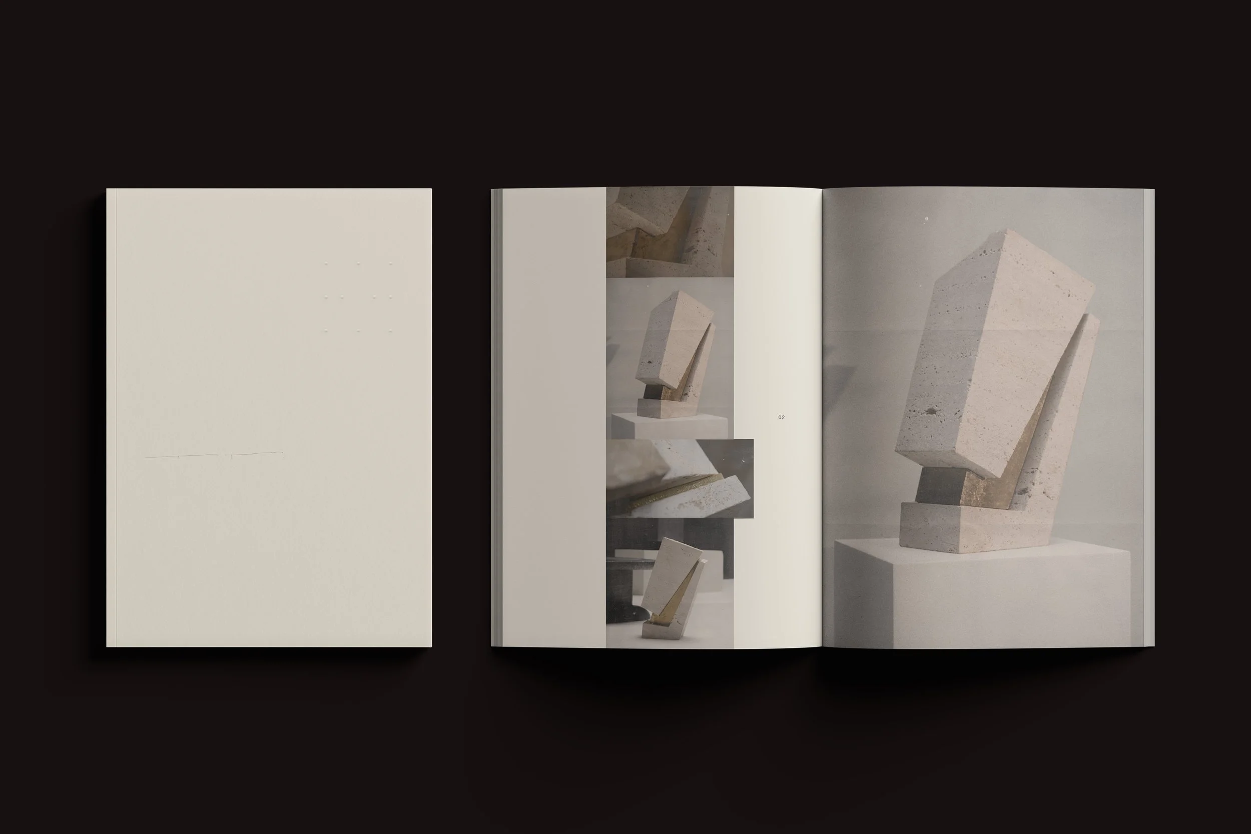 A publication designed to accompany a series of sculptural objects. Through minimal typography, generous margins, and slow visual pacing, the catalogue frames each piece with clarity and restraint.